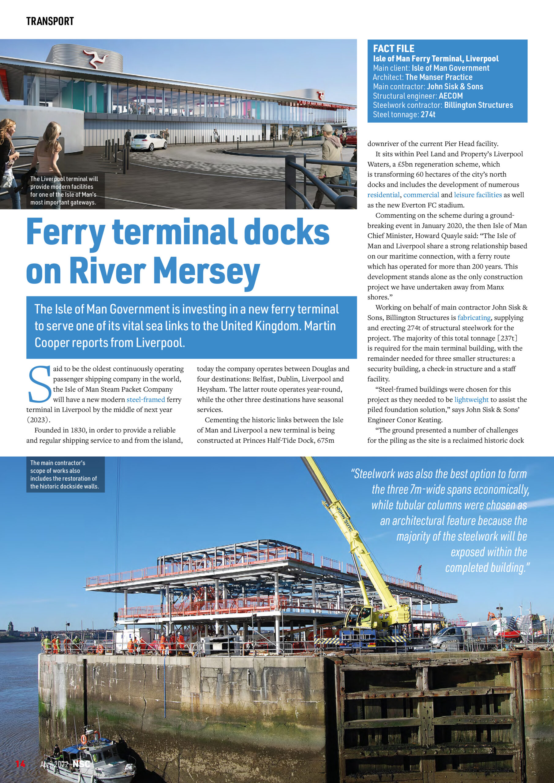 We are delighted to be featured in the April edition of the New Steel Construction (NSC) magazine for the Isle of Man Ferry Terminal, Liverpool.